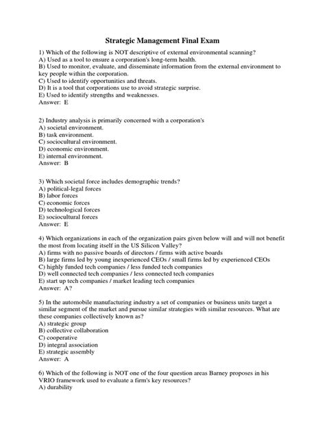 Read STRATEGIC MANAGEMENT FINAL EXAM ANSWERS Kobo BookBoon